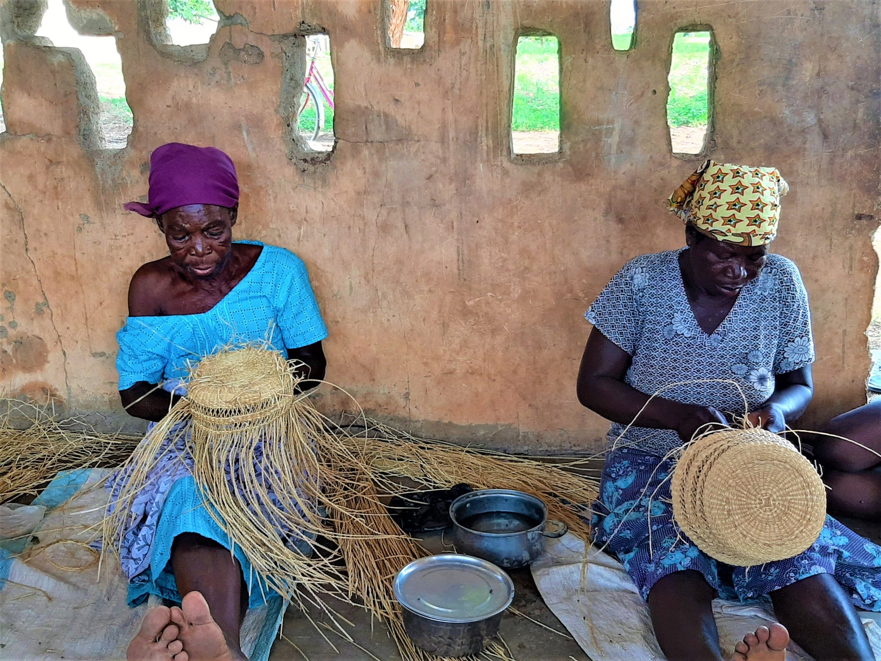 The material used for weaving in Bolgatanga is elephant grass, this grass is only available in the southern part of Ghana, Kumasi to be precise. The grasses are harvested and dried up, a process which might take up to three (3) days. It is then tied together in big bundles and transported to the Bolga markets. This is where most of the weavers buy their raw materials. The straw grass is further processed before weaving begins.