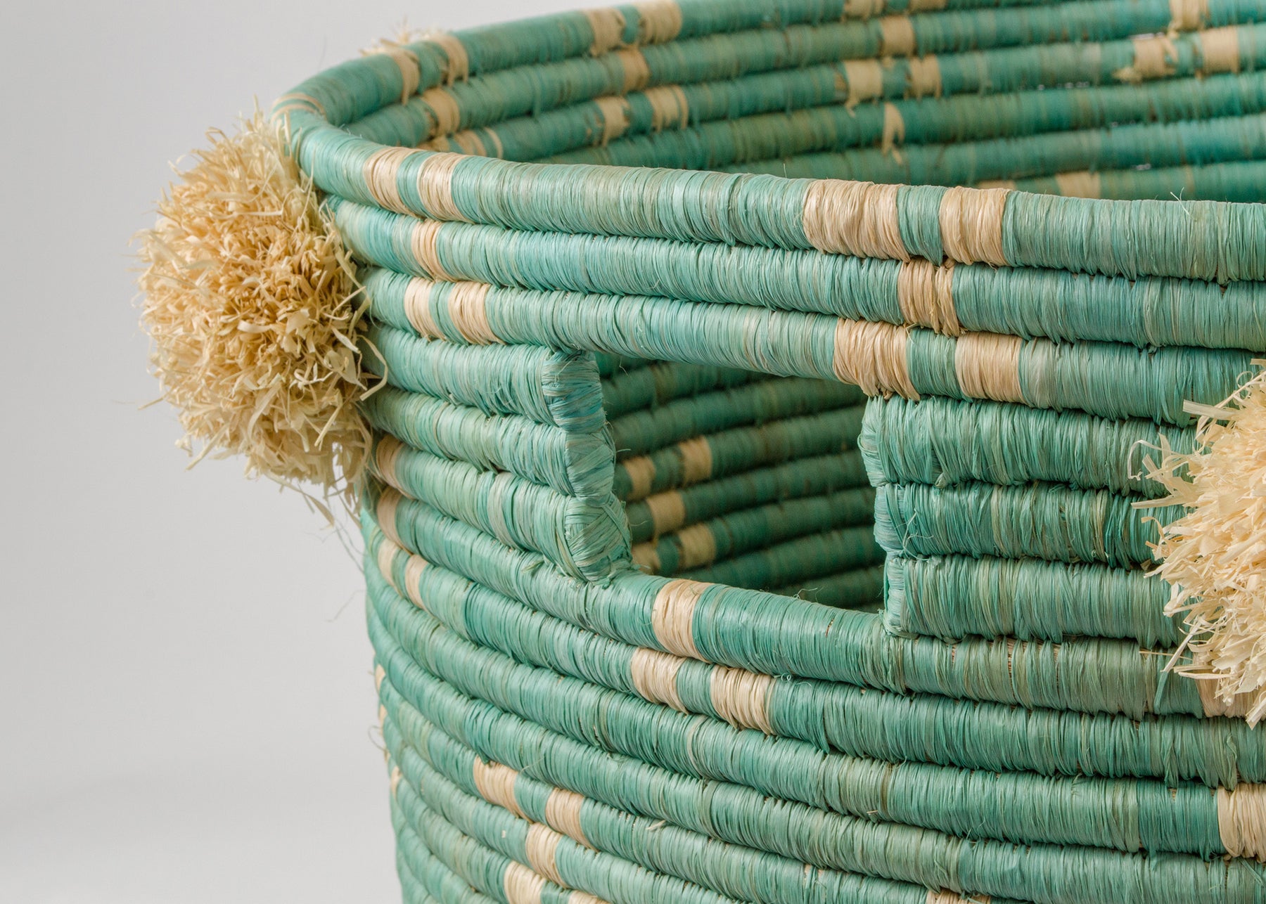 Made of the highest quality natural raffia fibers in an ethical, fair trade environment. Raffia is wound stitch by stitch around a small sweetgrass bundle. Handwoven over weeks by a woman in remote regions of Uganda.